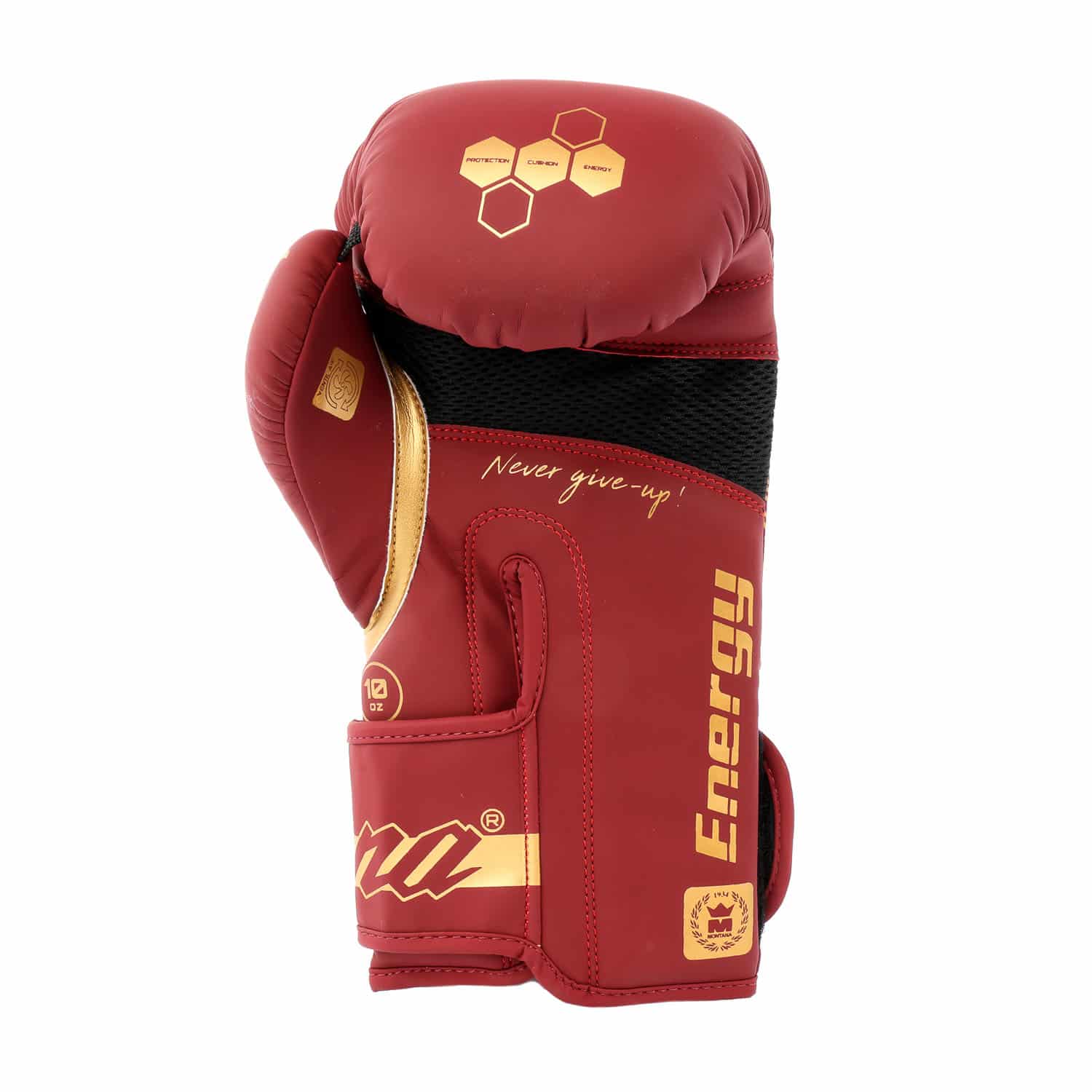 Gants de boxe ENERGY Legend bordeaux — PolyComposite avec paume VENTIL’AIR, mousse INJECT PROTECT monobloc, manchette SMART LOCK scratch. Le palier intermédiaire Montana en coloris bordeaux élégant — s’assortit aux gammes Legend haut de gamme. 44,99€.